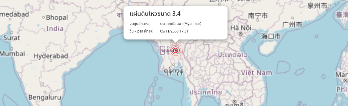 แผ่นดินไหว ประเทศเมียนมา (Myanmar) ขนาด 3.4