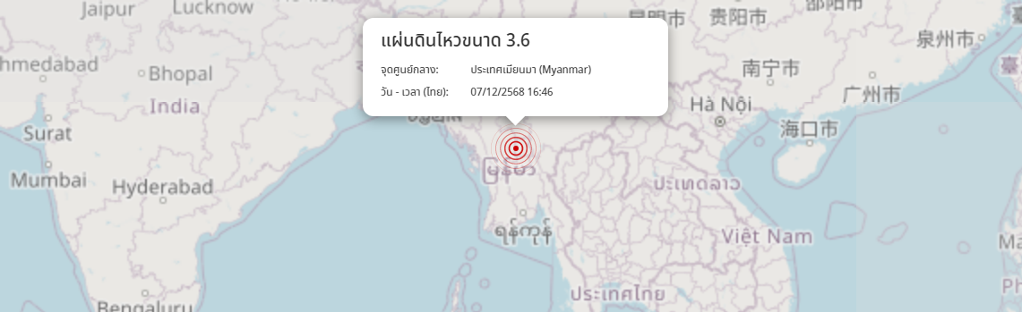 แผ่นดินไหว ประเทศเมียนมา (Myanmar) ขนาด 3.6