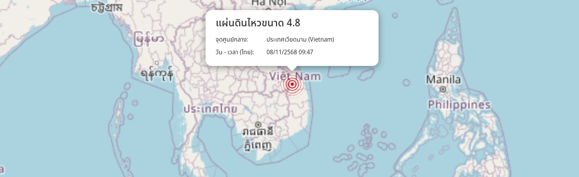 แผ่นดินไหว ประเทศเวียดนาม (Vietnam) ขนาด 4.8