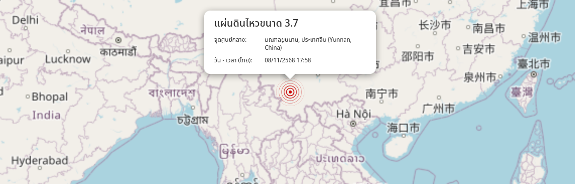 แผ่นดินไหว มณฑลยูนนาน, ประเทศจีน (Yunnan, China) ขนาด 3.7