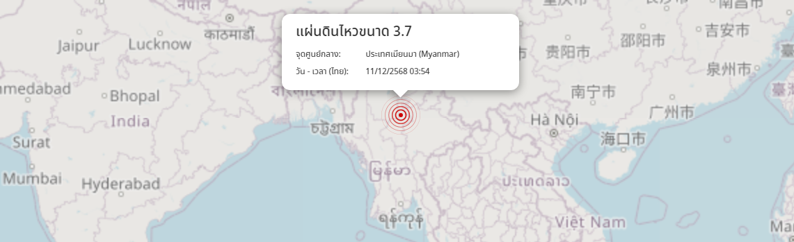 แผ่นดินไหว ประเทศเมียนมา (Myanmar) ขนาด 3.7