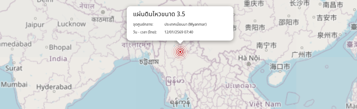 แผ่นดินไหว ประเทศเมียนมา (Myanmar) ขนาด 3.5