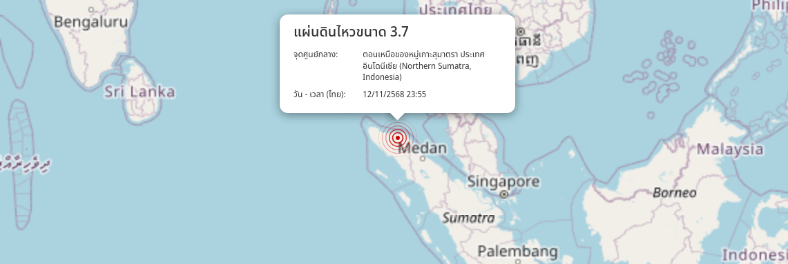 แผ่นดินไหว ตอนเหนือของหมู่เกาะสุมาตรา ประเทศอินโดนีเซีย (Northern Sumatra, Indonesia) ขนาด 3.7