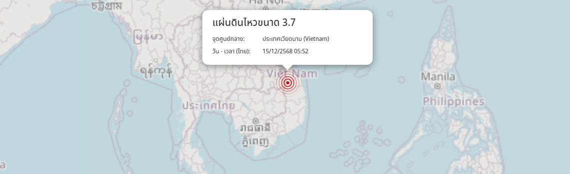 แผ่นดินไหว ประเทศเวียดนาม (Vietnam) ขนาด 3.7