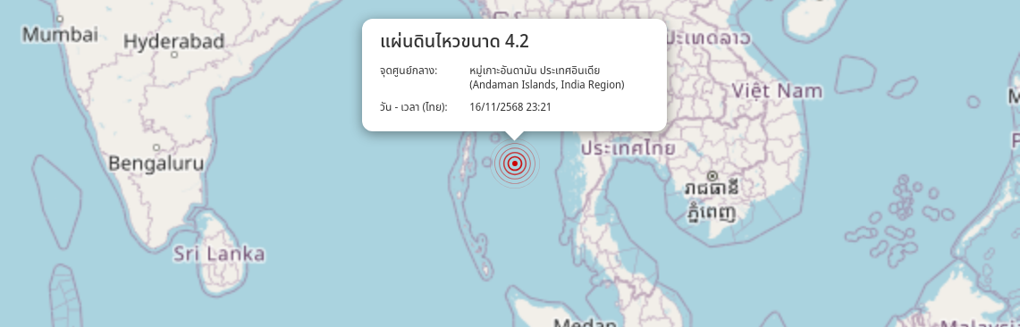 แผ่นดินไหว หมู่เกาะอันดามัน ประเทศอินเดีย (Andaman Islands, India Region) ขนาด 4.2