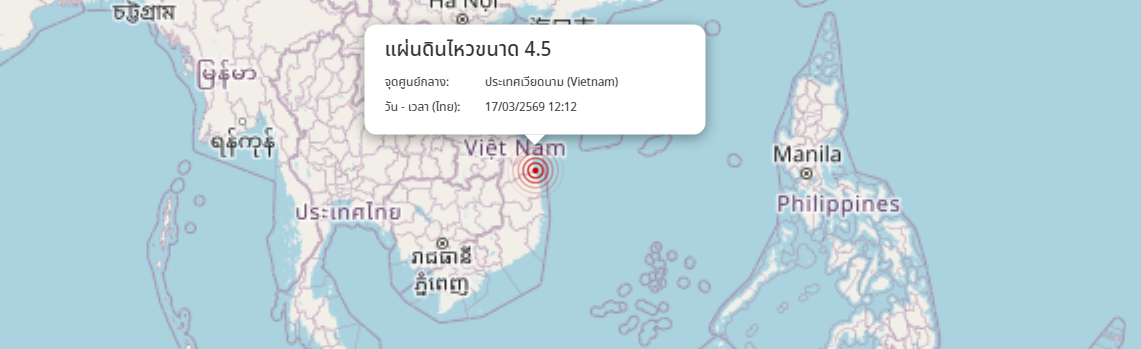 แผ่นดินไหว ประเทศเวียดนาม (Vietnam) ขนาด 4.5