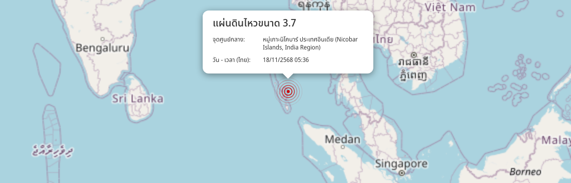 แผ่นดินไหว หมู่เกาะนิโคบาร์ ประเทศอินเดีย (Nicobar Islands, India Region) ขนาด 3.7