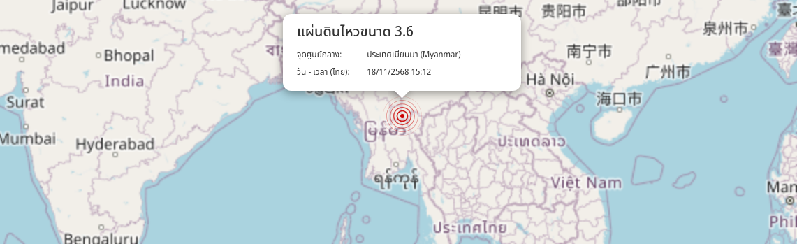 แผ่นดินไหว ประเทศเมียนมา (Myanmar) ขนาด 3.6