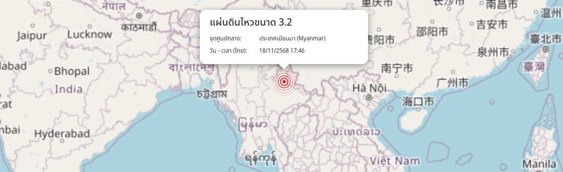 แผ่นดินไหว ประเทศเมียนมา (Myanmar) ขนาด 3.2