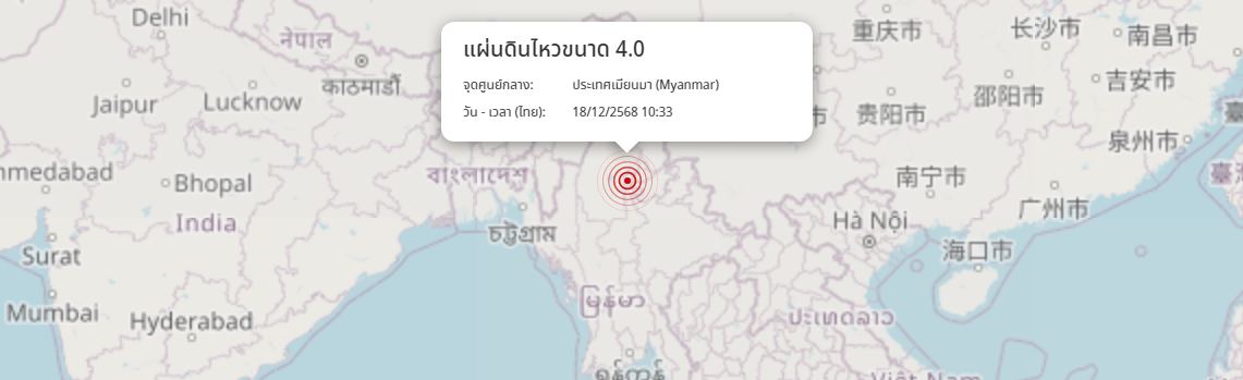 แผ่นดินไหว ประเทศเมียนมา (Myanmar) ขนาด 4.0
