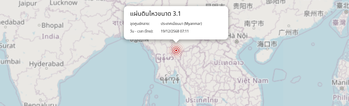 แผ่นดินไหว ประเทศเมียนมา (Myanmar) ขนาด 3.1