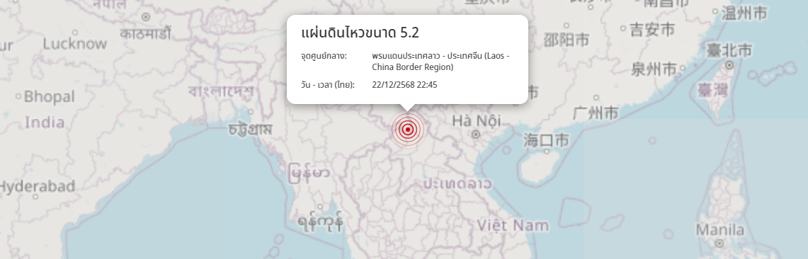 แผ่นดินไหว พรมแดนประเทศลาว - ประเทศจีน (Laos - China Border Region) ขนาด 5.2