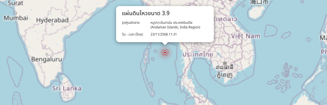 แผ่นดินไหว หมู่เกาะอันดามัน ประเทศอินเดีย (Andaman Islands, India Region) ขนาด 3.9