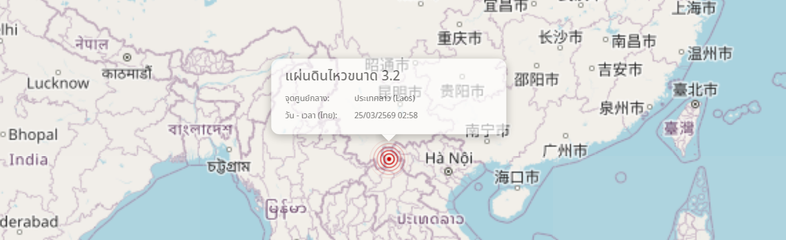 แผ่นดินไหว ประเทศลาว (Laos) ขนาด 3.2
