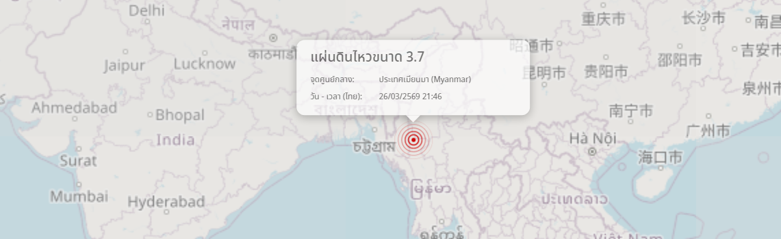 แผ่นดินไหว ประเทศเมียนมา (Myanmar) ขนาด 3.7
